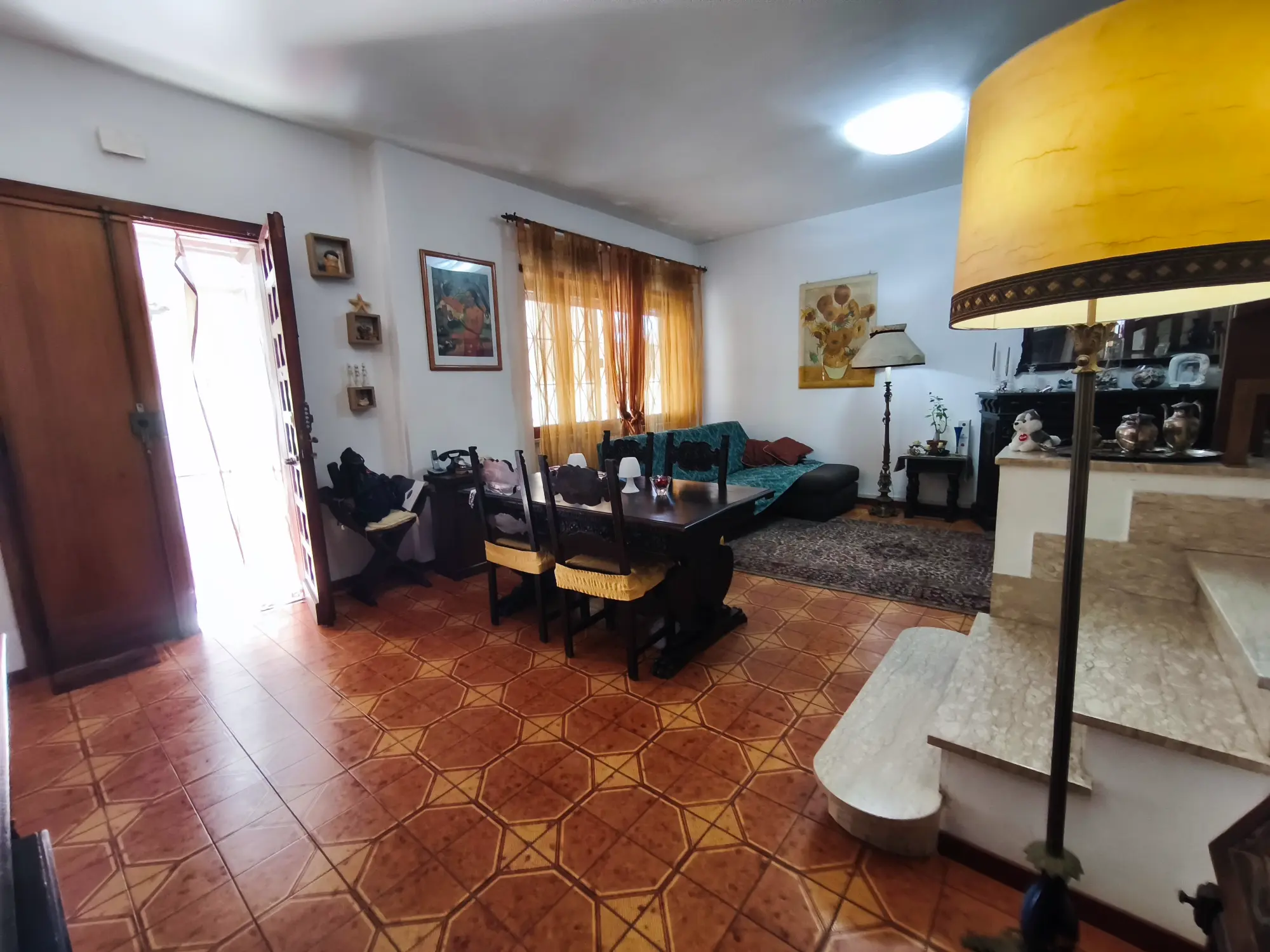 Piano Terra: salone doppio, cucina abitabile con tavolo per 4 persone, bagno, giardino di circa 50 mq