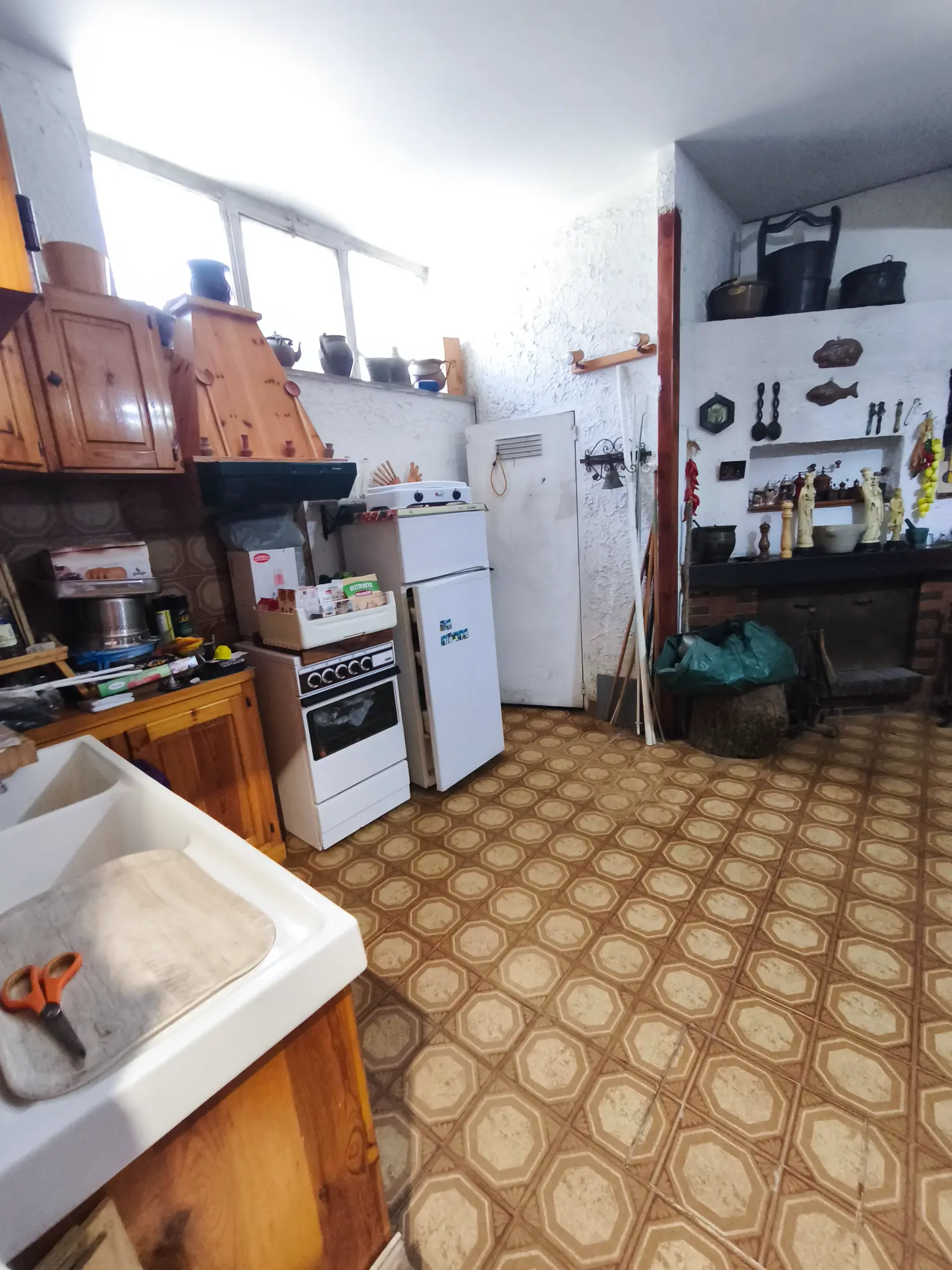 Piano Seminterrato: cucina abitabile con tavolo per 4 persone, camino, bagno e ambienti accessori